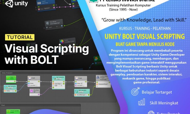 Kursus / Training / Pelatihan Unity Bolt Visual Scripting – Game Development Tanpa Koding | Game Developer | Interactive Design